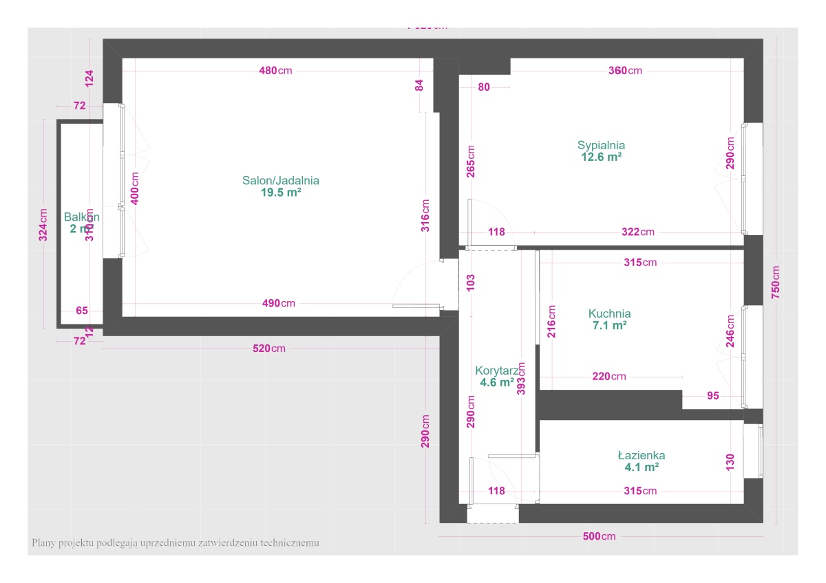Mieszkanie o całkowitej powierzchni wg. Księgi Wieczystej 51,7m2 składa się z: