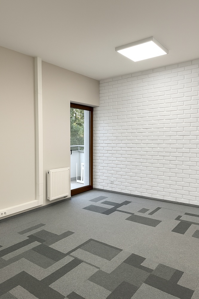 Biuro posiada południowo-zachodnią ekspozycję, dzięki czemu jest jasna i przyjemna do pracy przez cały dzień. Lokal został wykończony w wysokim standardzie i jest gotowy do wynajęcia.