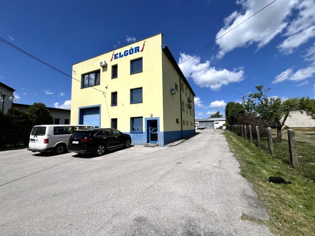 Budynek warsztatowo-biurowy około 450m oraz wiata magazynowa z antresolą około 250m.