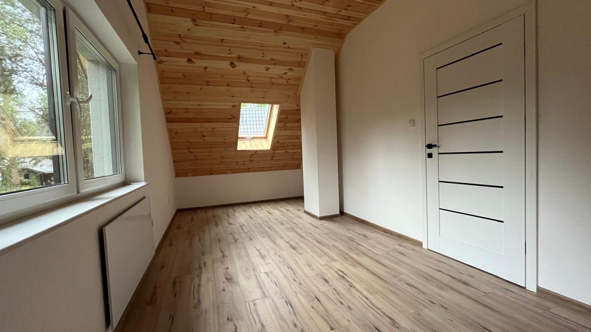 Sprzedam nowy, całoroczny dom w lesie, 300 metrów od plaży, Kamionki Małe, 15 km od Torunia.