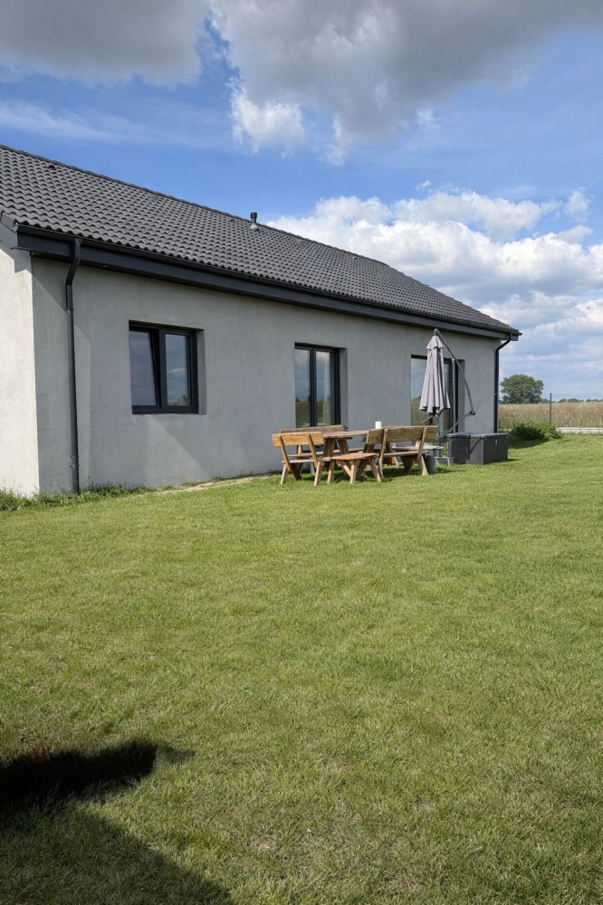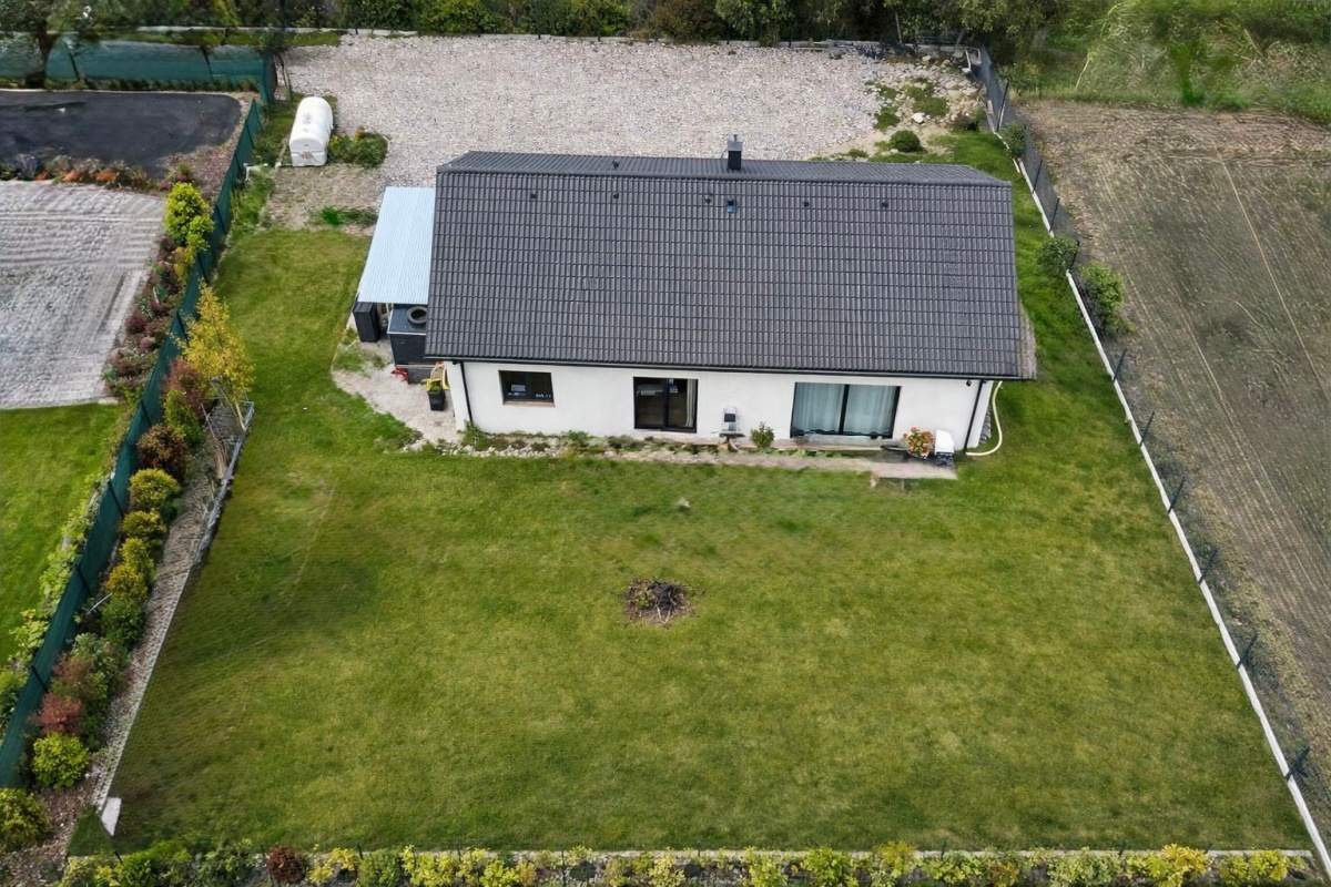 Dom oddany do użytkowania w 2024 roku, gotowy do zamieszkania. Sprzedaż obejmuje pełne wyposażenie widoczne na zdjęciach, bez konieczności ponoszenia dodatkowych nakładów finansowych.