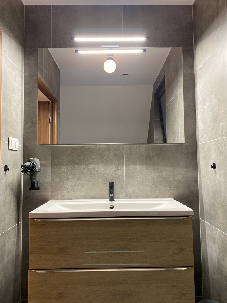 Dom ogrzewany jest pompa powietrze-powietrze fimry Midea HVAC system funkcja ogrzewania i chłodzenia), dodatkowo na parterze i na pietrze znajduje sie ogrzewanie podlogowe elektryczne (ze sterowaniem). Ciepla woda: bojler 300L. Dwa miejsca na podlaczenie pralki (na pietrze w lazience, na parterze w pomieszczeniu gospodarczym). Prad sila 380V do ladowania np. auta eletrycznego.