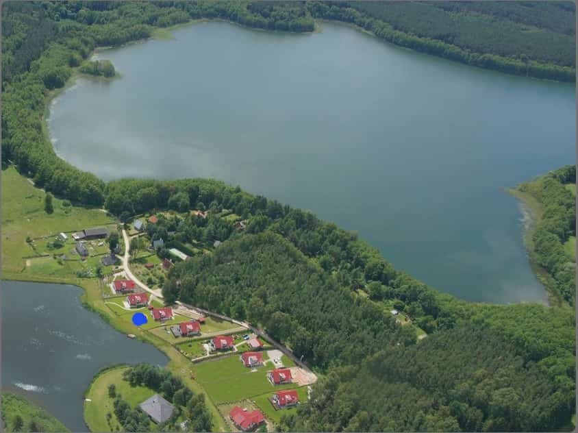 Dom usytuowany jest na kameralnym osiedlu domów jednorodzinnych z widokiem na staw, w otoczeniu lasów i tuż obok jeziora Purda.