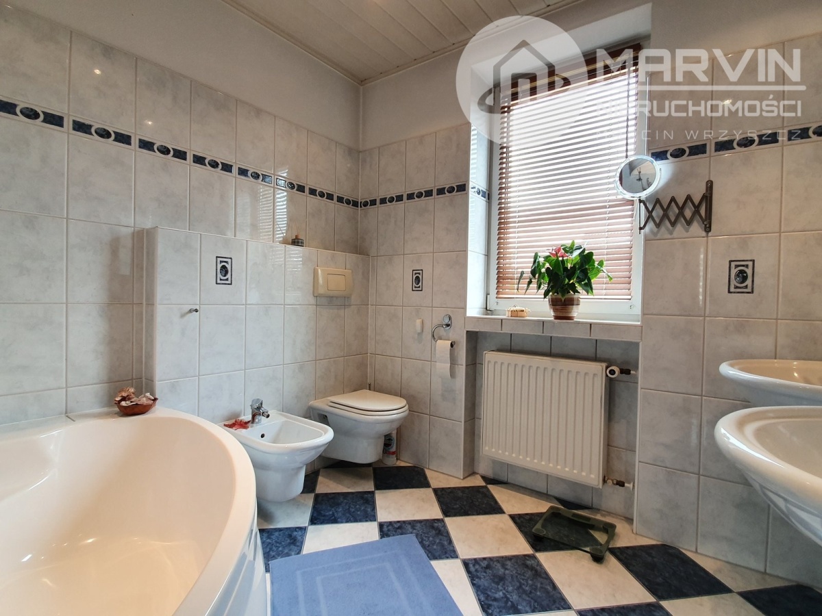 – łazienka (wanna + toaleta + bidet + 2x umywalka) 6,3m2