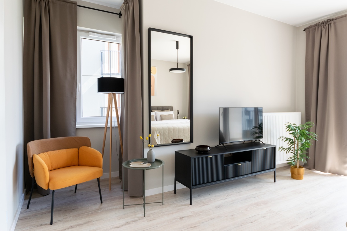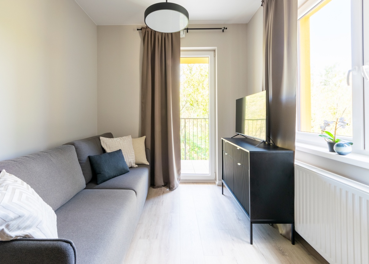 Mieszkanie 1 – pokój z wyjściem na balkon i łazienką