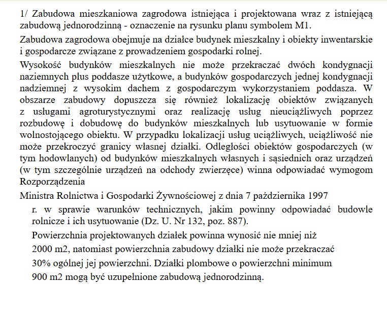 MPZP (symbol M1 – Zabudowa mieszkaniowa zagrodowa):