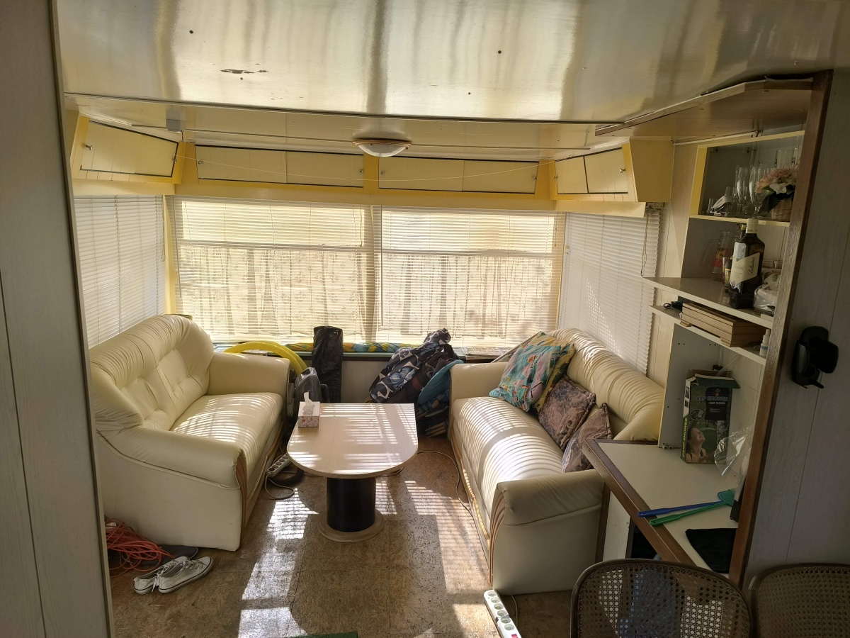 Działka posiada doprowadzony prąd oraz wodę które to też są podłączone do przyczepy. W przyczepie mamy do dyspozycji dwie sypialnie, kibelek, prysznic, kuchnie z lokówką i palnikami gazowym (na butle) oraz salonik ze jadalnią.