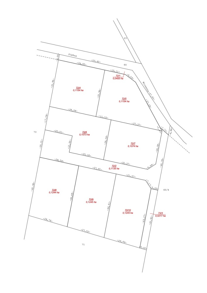 Idealne metraże zarówno pod budowę domu jednorodzinnego, jak i pod inwestycję. Aktualnie działki są w trakcie podziału. Numer działki przed podziałem 72.