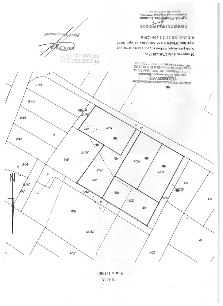 Trzy działki budowlane, które mogą być przedmiotem sprzedaży pojedynczo, z przeznaczeniem na budowę budynków mieszkalnych (całorocznych lub letniskowych) lub w całości albo po dwie, trzy, pod budowę pensjonatu. Na załączonej mapie działki wg nowego podziału przeprowadzonego w roku 2017 oznaczone zostały literami A, B, C, D i E. Działki B i C zostały sprzedane.