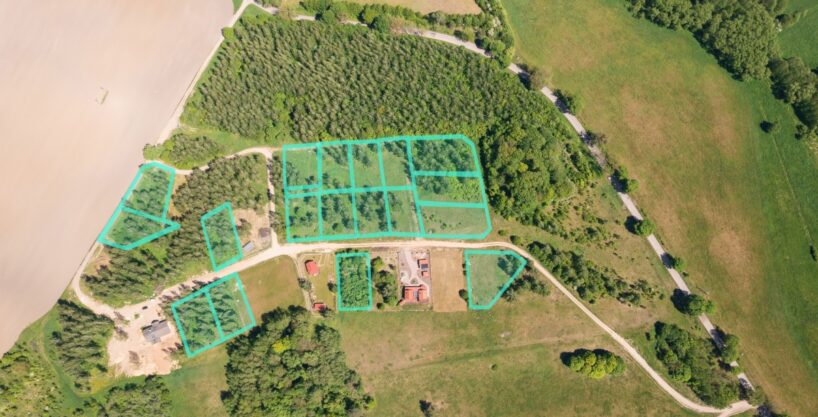 Działki są częściowo zalesione. Na każdej znajduje się od 5 do 15 drzew, głównie brzóz. Są to 20-30 letnie samosiejki, a więc już dorodne drzewa. W razie potrzeby mogą zostać usunięte, ale gorąco namawiam do ich przynajmniej częściowego pozostawienia. Drzewa stwarzają niepowtarzalny klimat. Domek w otoczeniu drzew to kwintesencja relaksu.