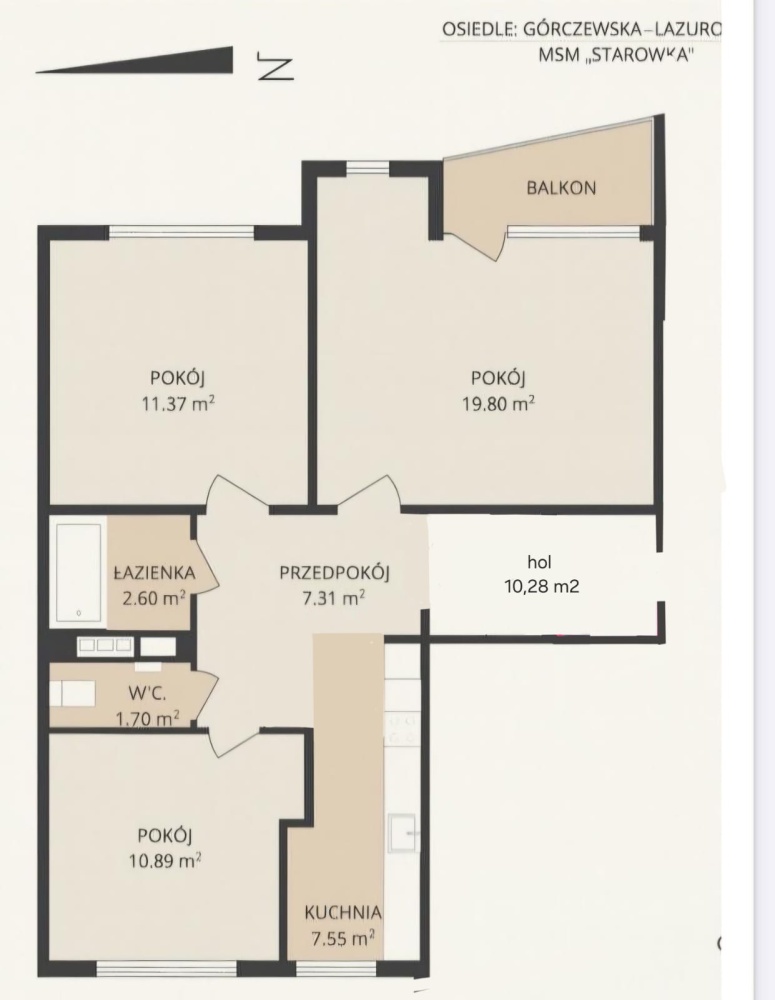 • Czynsz ok. 700 zł + zaliczki (woda, c.o.)