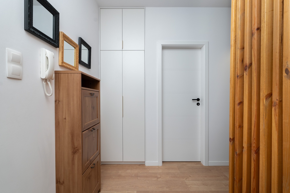 -przedpokój , w którym znajduję się szafa w zabudowie.
