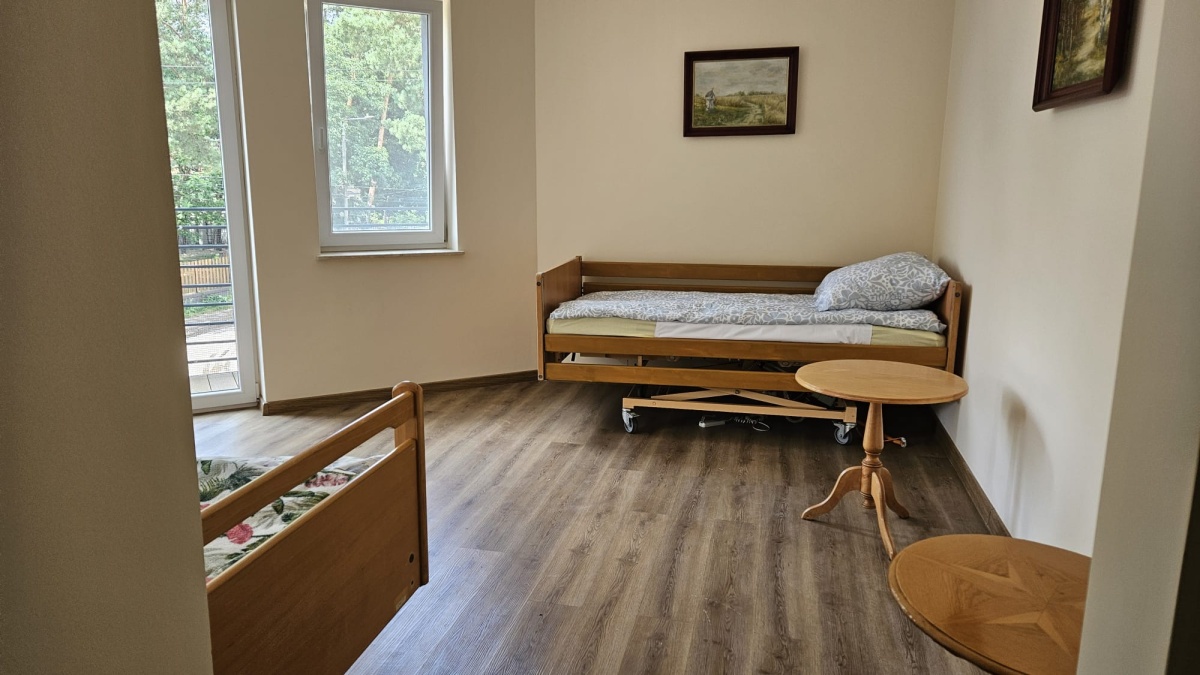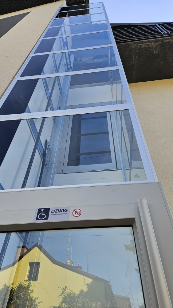 Nowoczesna winda: Nowo zamontowana winda z wejściem zewnętrznym na parterze obsługuje I oraz II piętro, zapewniając komfortowy transport osób starszych i leżących.