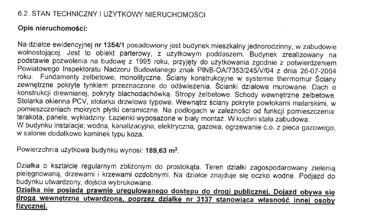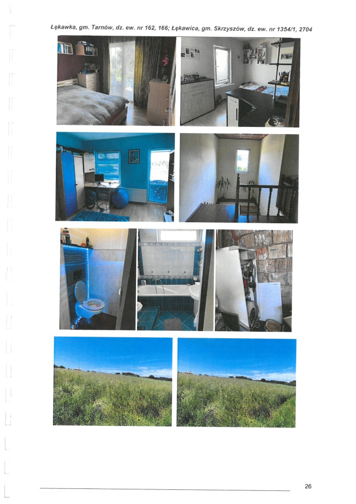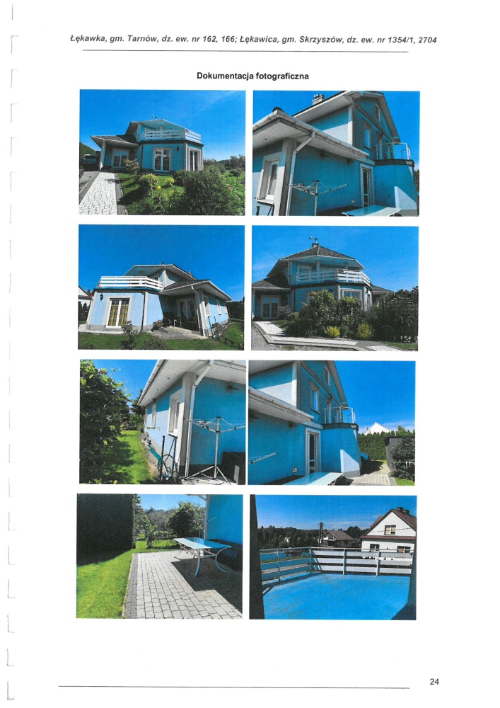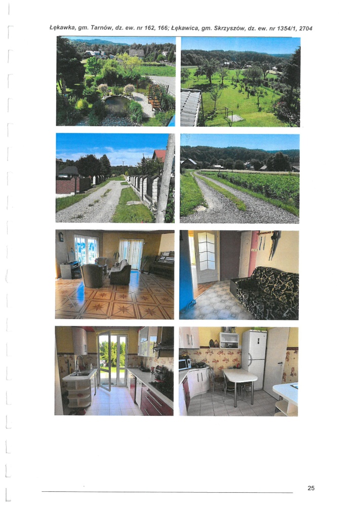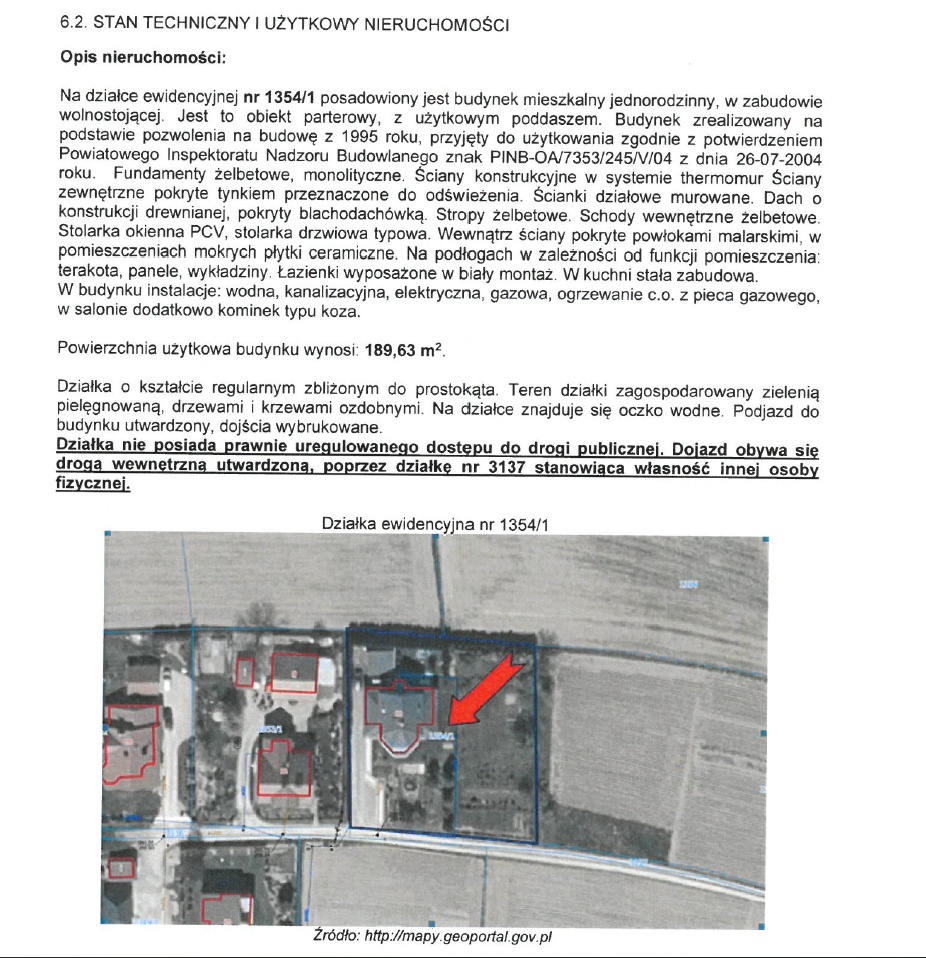 w miejscowości Łękawica, gmina Skrzyszów, objętej księgą wieczystą nr TR1T/00087491/7. Działka zabudowana jest budynkiem mieszkalnym jednorodzinnym parterowym z użytkowym poddaszem o powierzchni użytkowej 189,63 m².