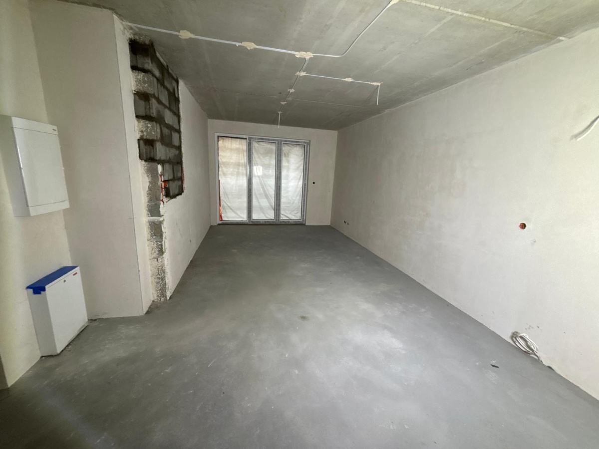 *Przestronny salon z aneksem kuchennym (23,35 m²) – serce apartamentu.
