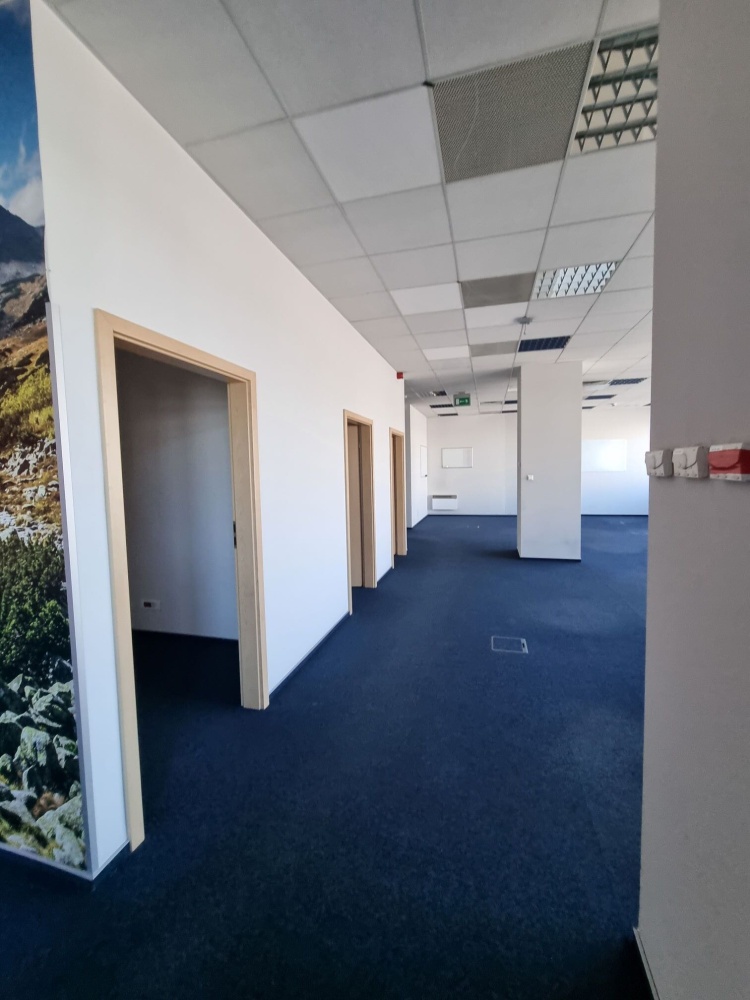 Do wynajęcia lokal biurowy o powierzchni 554,61 m2, zlokalizowany na I piętrze biurowca na ul. Wadowickiej 6. Lokal składa się z dziewięciu pomieszczeń, w tym dwóch toalet.
