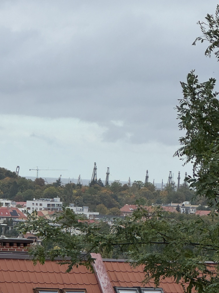 Dwupokojowe mieszkanie na 3 piętrze w czteropiętrowym bloku. Ekspozycja wschód, zachód z pięknym widokiem z salonu na zachody słońca, a z sypialni i kuchni na morze i Gdańskie żurawie.