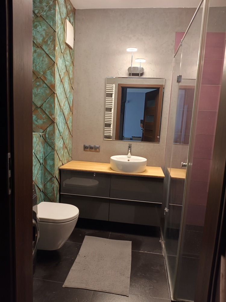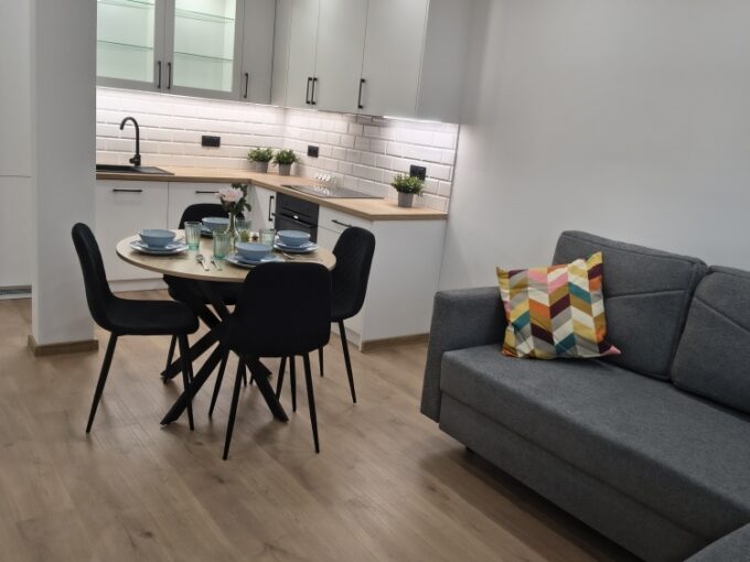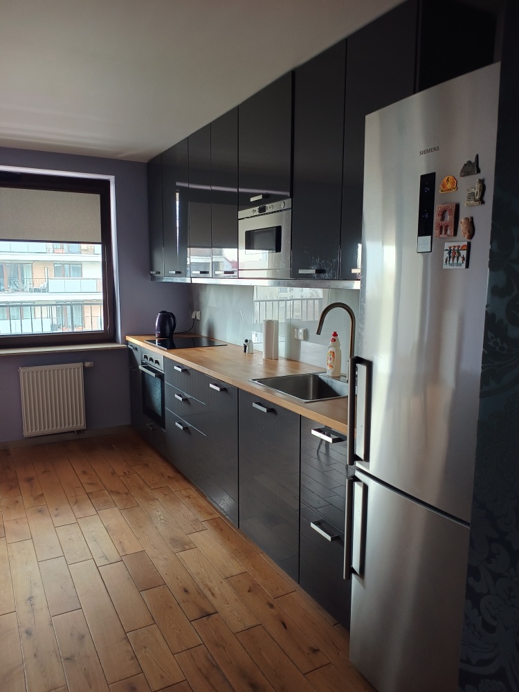 Wynajmę mieszkanie dwupokojowe 56 metrów ( salon z aneksem kuchennym z pełnym wyposażeniem) w nowoczesnym budynku na zamkniętym i monitorowanym osiedlu z ochroną fizyczną obok Promenady. Łazienka z prysznicem i z pralką, w korytarzu jest szafa w zabudowie. Do mieszkania przynależy komórka lokatorska 2,6 m na tej samej kondygnacji, balkon z widokiem na zielone patio i miejsce parkingowe w garażu podziemnym. Koszt wynajmu 4400zł plus opłaty miesięcznie ( czynsz, energia)