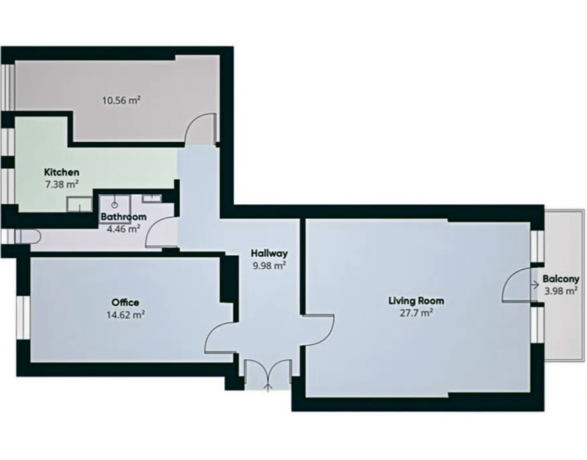 Trzy ustawne pokoje: idealne na sypialnie, salon czy gabinet (o powierzchni 27,7 m², 14,62 m² i 10,56 m²).