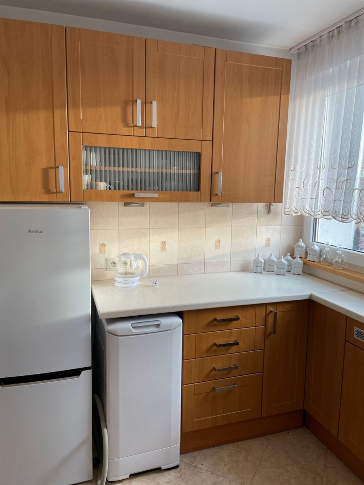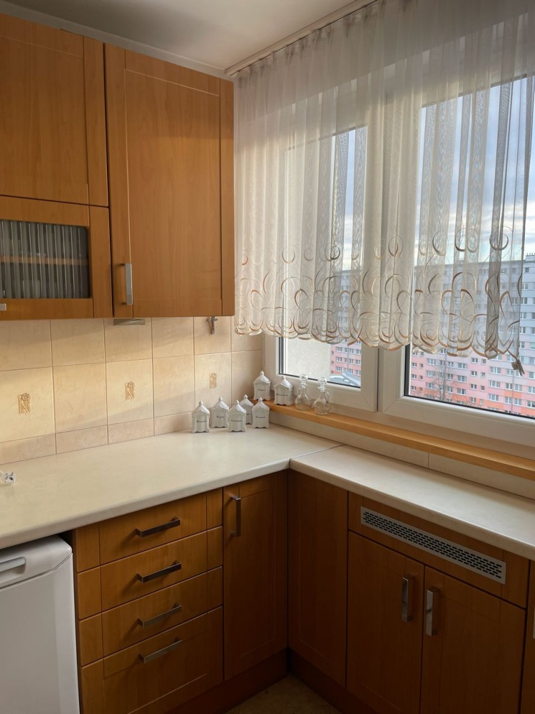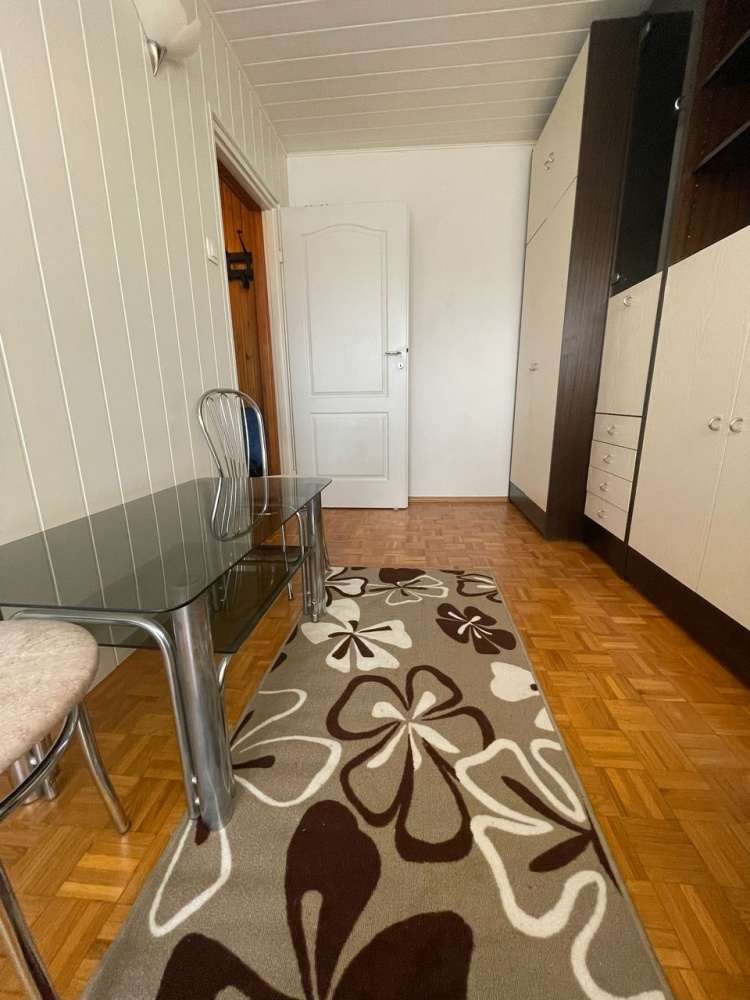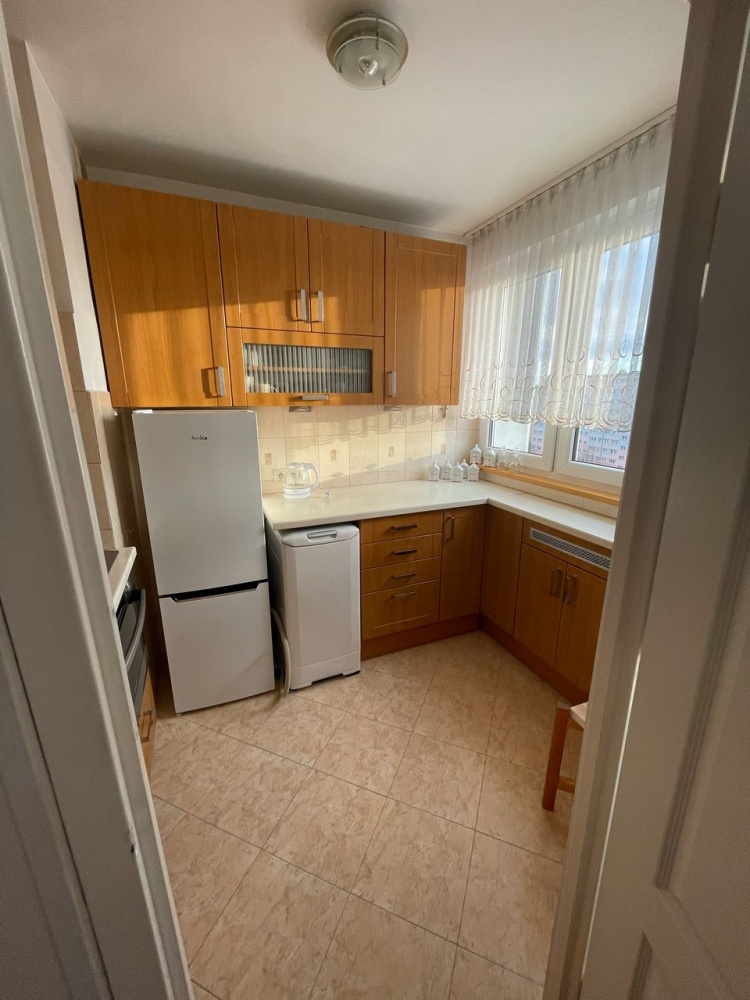 Mieszkanie jest w bardzo dobrym stanie, kuchnia i łazienka świeżo po remoncie. Można od razu się do niego wprowadzić, gdyż w cenie mieszkania zostają wszystkie meble, sprzęty agd, wyposażenie, 2 telewizory, a nawet naczynia i garnki kuchenne. Łazienka znajdująca się na wprost wejścia,posiada wannę oraz wc. Z mniejszego ok.9 m pokoju po lewej stronie wychodzi się na balkon/loggie, natomiast z większego ok 13 m pokoju po prawej str przechodzi się do ok. 3m kuchni. W pokojach oraz przedpokoju na podłodze położony jest parkiet drewniany w bardzo dobrym stanie. Okna lokalu wychodzą na stronę południową, dzięki czemu mieszkanie jest jasne i słoneczne. Posiada centralne ogrzewanie, gaz, rolety antywłamaniowe, parking zamykany szlabanem na pilota. Znajduje się na 10 piętrze z windą, ale powyżej jest jeszcze piętro z suszarniami, które izoluje mieszkanie od dachu. W mieszkaniu mieszkały osoby niepalące i dbające o czystość.