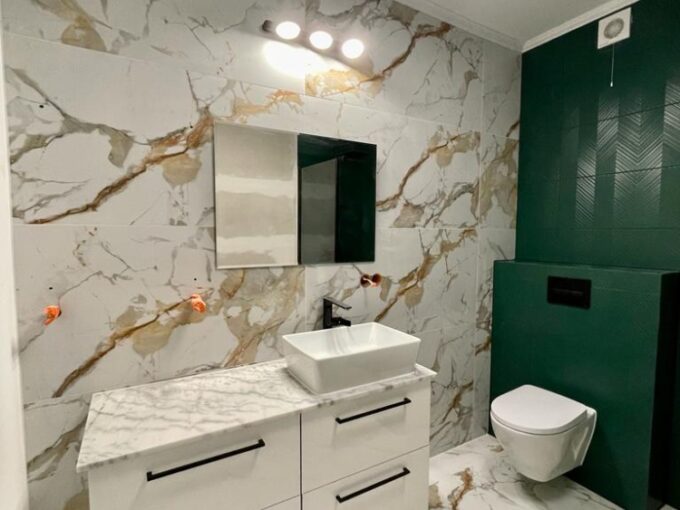 Mieszkanie jest w idealnym stanie (tylko do odmalowania). Meble (w kuchni, łazience, pokoju, garderobie i przedpokoju), podłogi i wyposażenie kuchni wyglądają tak, jakby nigdy nie były używane. Wszystko powyższe jest w cenie mieszkania.