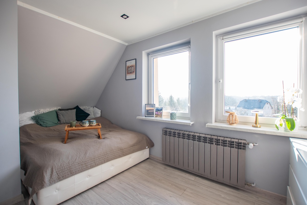 – Duża sypialnia – zapewniająca komfortową przestrzeń do odpoczynku.