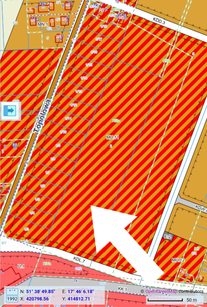 – KDL.7 – tereny drogi klasy lokalnej (około 860m2).