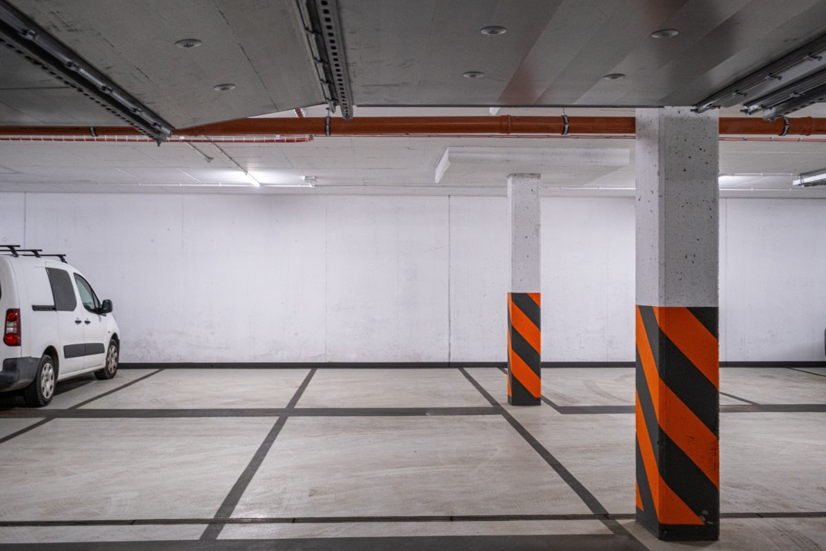 Dwa miejsca postojowe w systemie zależnym (jedno za drugim) w hali garażowej oraz komórka lokatorska 3,2 m² dodatkowo płatne 80.000.