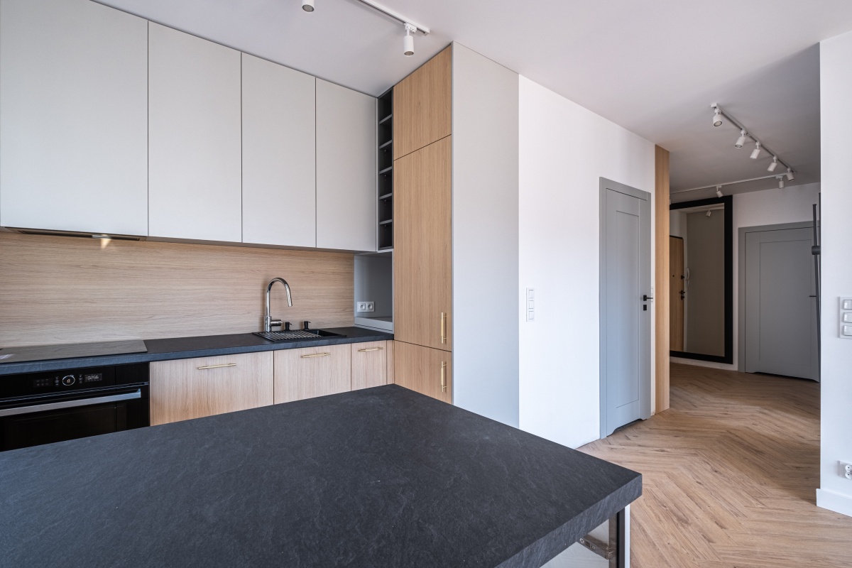 Wykończenie: mieszkanie nowe, gotowe do zamieszkania, wykończone w wysokim standardzie, przemyślane zabudowy stolarskie na wymiar, kuchnia w pełni wyposażona w wysokiej klasy sprzęt AGD.