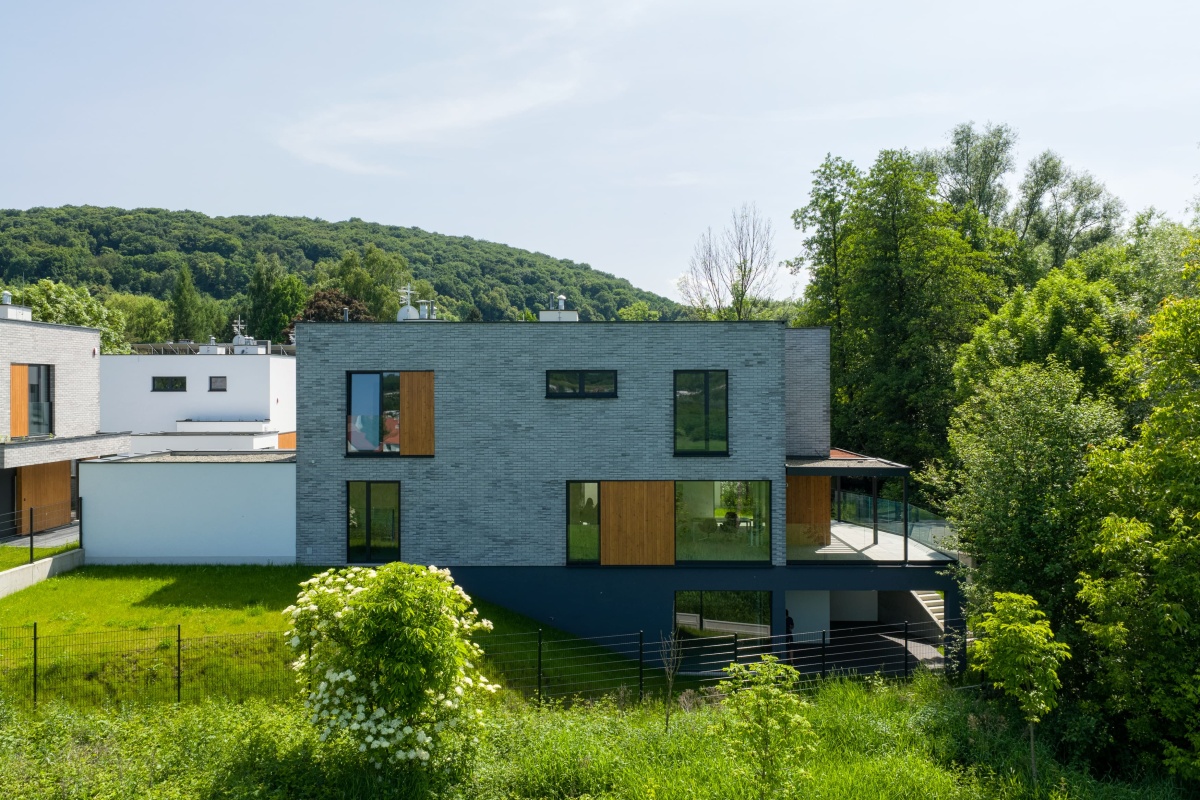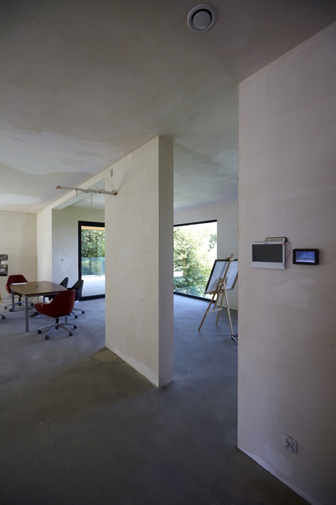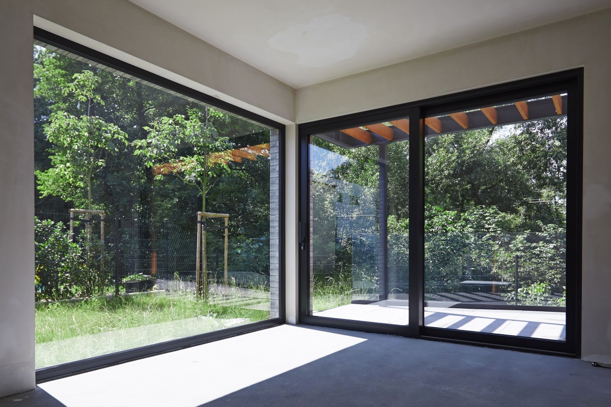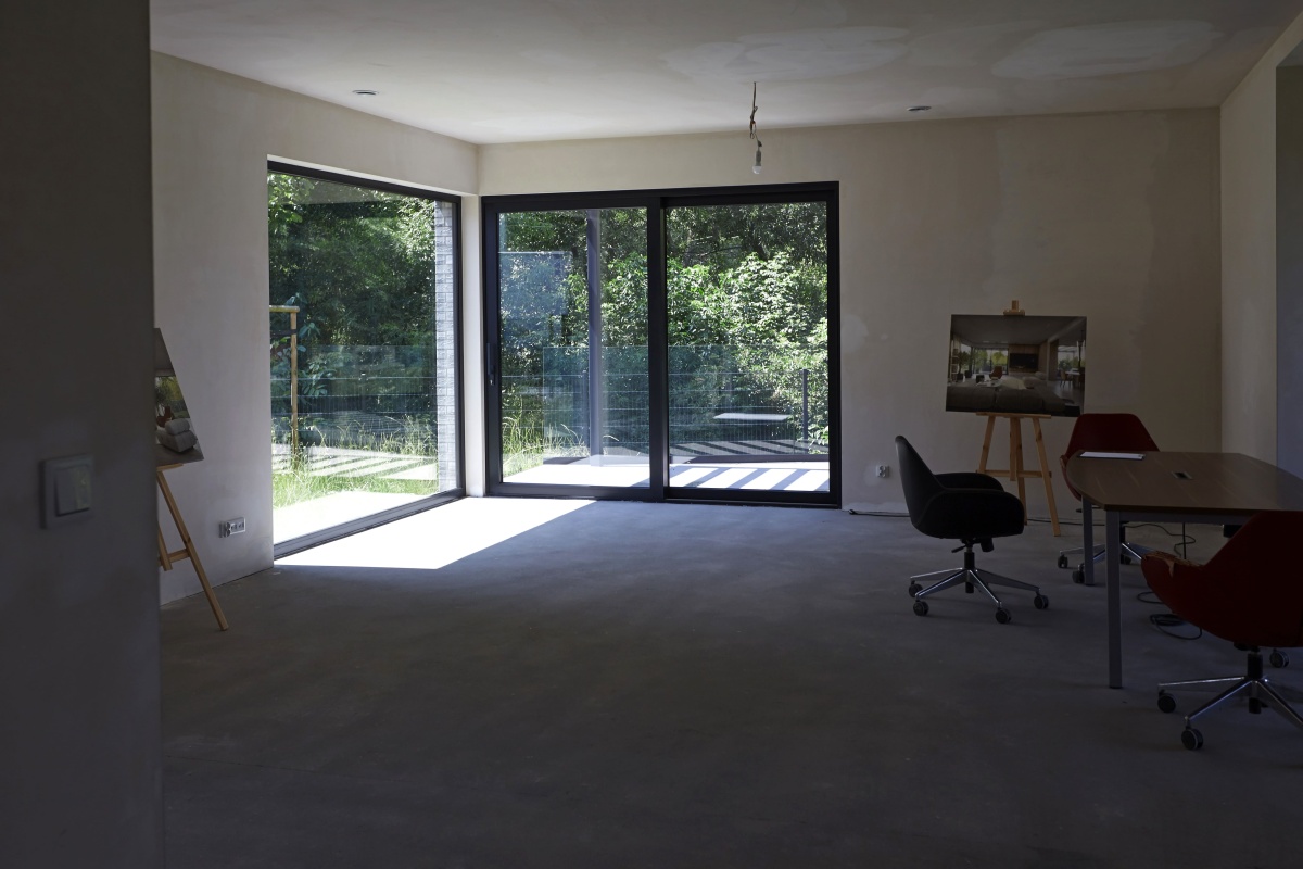 • reprezentacyjny salon z wysokimi, aluminiowymi przeszkleniami i wyjściem do ogrodu,