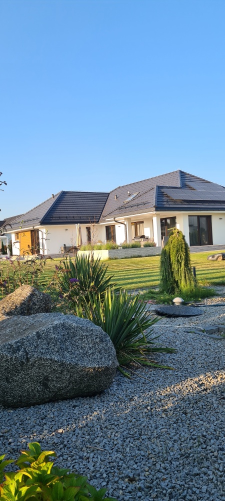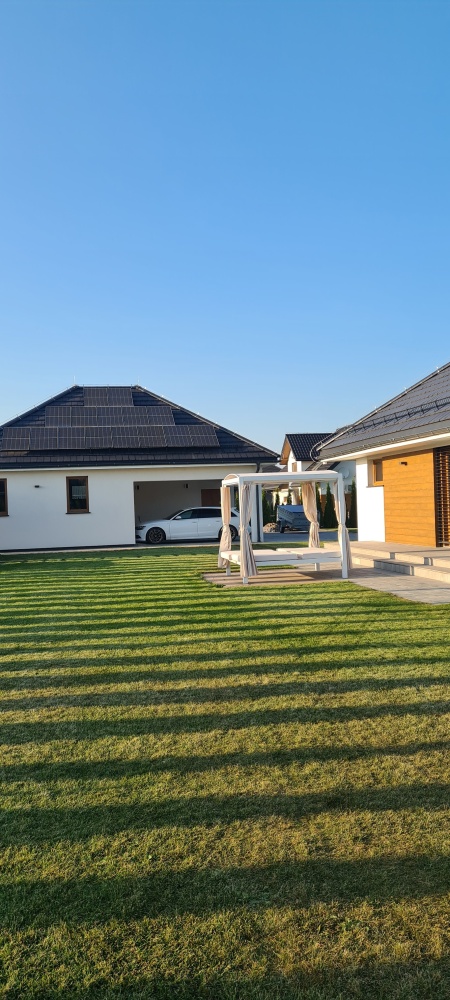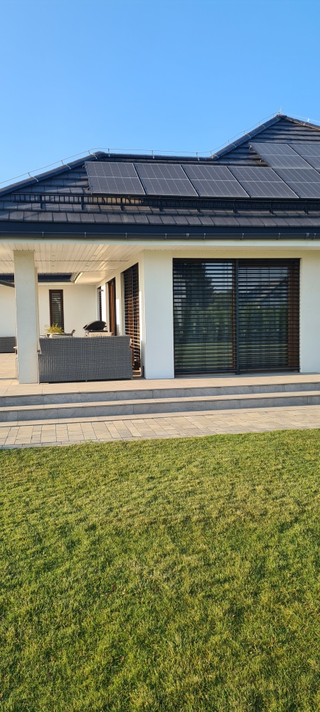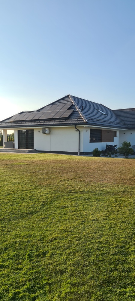 Ogrzewanie podłogowe, energooszczędna pompa ciepła oraz fotowoltaika na dachu 10 kw, co pozwala na znaczną oszczędność kosztów eksploatacyjnych.