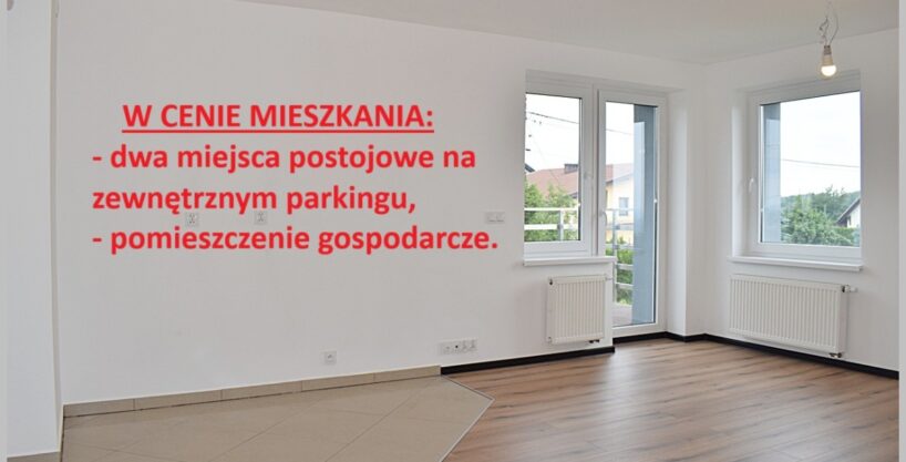 W CENIE MIESZKANIA SĄ DWA MIEJSCA POSTOJOWE NA TERENIE ZEWNĘTRZNYM ORAZ POMIESZCZENIE GOSPODARCZE.