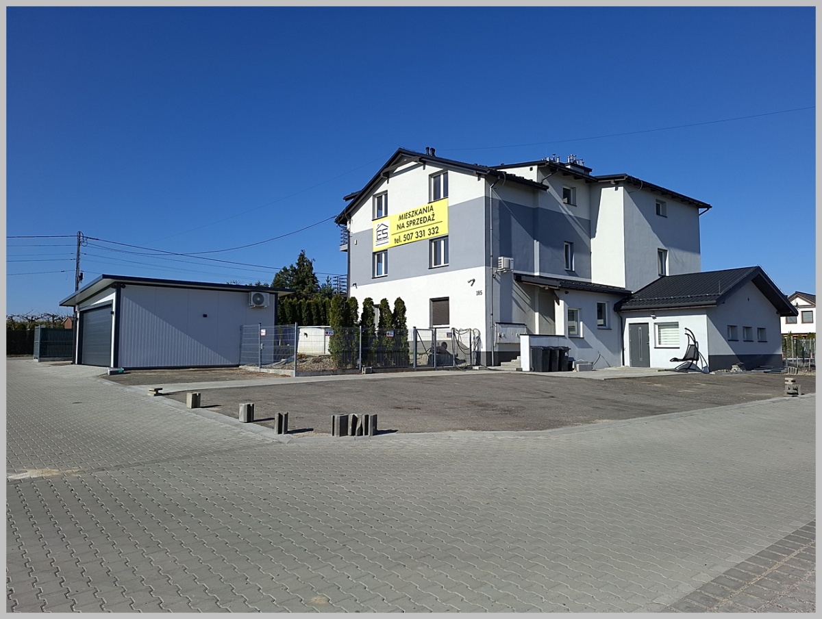 * Wydzielona, wewnętrzna droga dojazdowa do budynków będzie wybrukowana. Teren posesji będzie uporządkowany i zagospodarowany.
