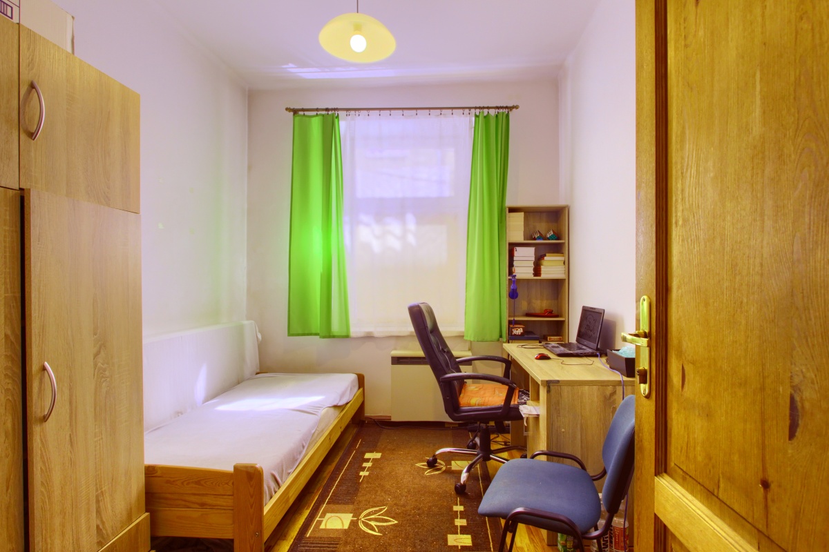 Pokoje umeblowane pod najemców: łóżka, szafy, biurka. W kuchni meble kuchenne, lodówka, kuchenka elektryczna czteropłytowa. W łazience pralka, wanna.