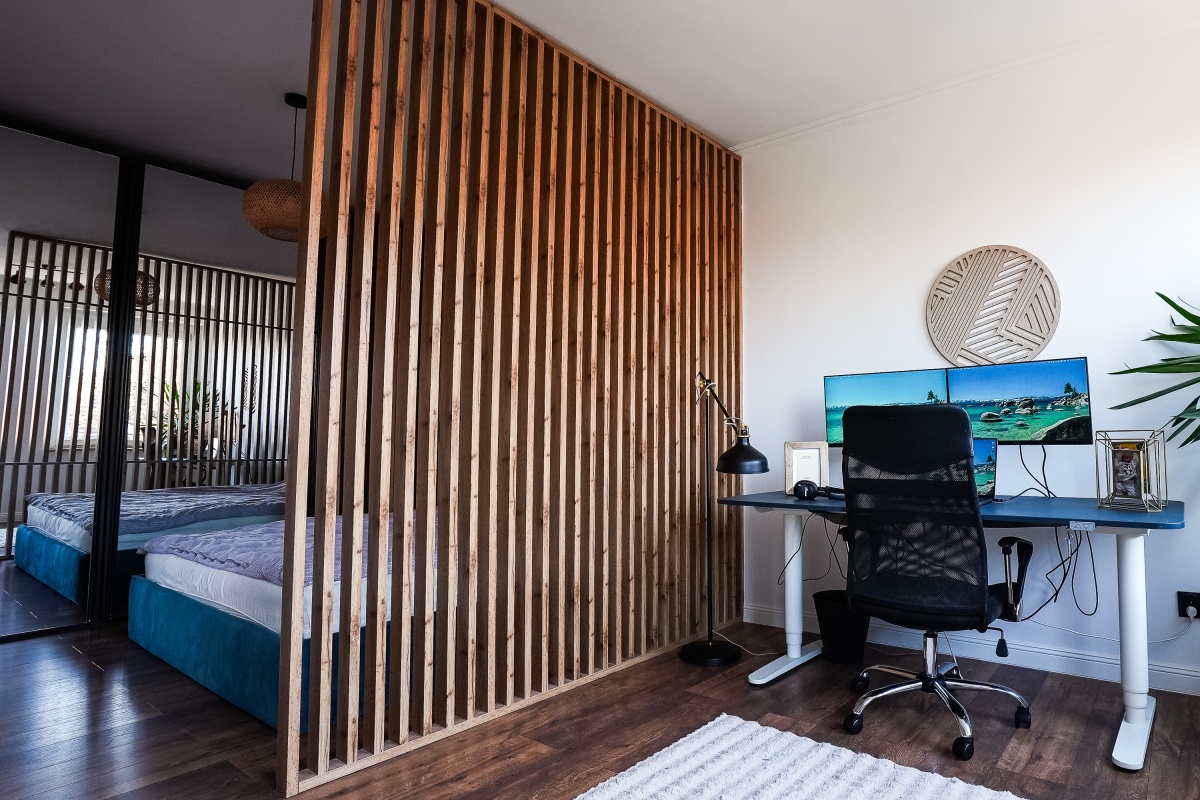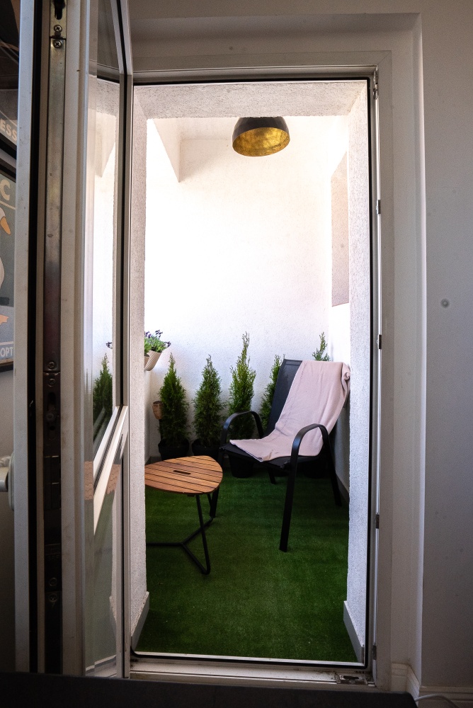 Balkon to dodatkowe miejsce do odpoczynku – idealne na chwilę relaksu po pracy.