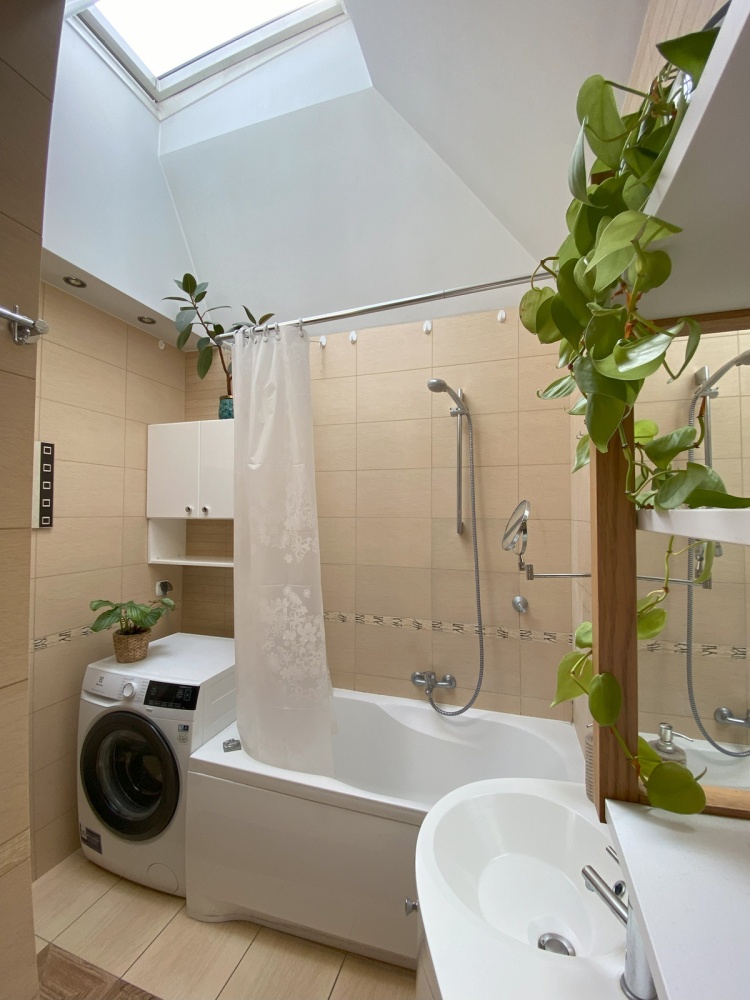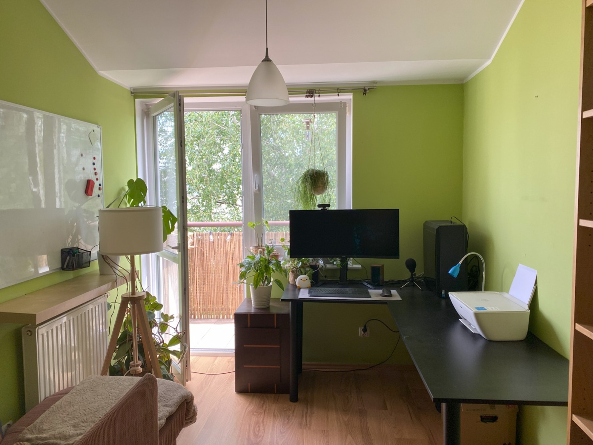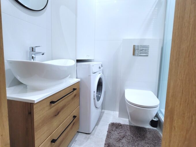 W skład mieszkania wchodzą trzy ustawne pokoje, salon z aneksem kuchennym, dwie łazienki, pomieszczenie gospodarcze oraz dwa balkony z pięknym widokiem na ogród i drzewa. Mieszkanie jest w pełni umeblowane i gotowe do zamieszkania – wyposażone w zmywarkę, lodówkę, kuchenkę, piekarnik i pralkę. Lokal oferuje bardzo dużo miejsca do przechowywania – w każdym pomieszczeniu znajdują się pojemne szafy, regały lub komody. Mieszkanie jest doskonałą alternatywą dla domu w zabudowie szeregowej.