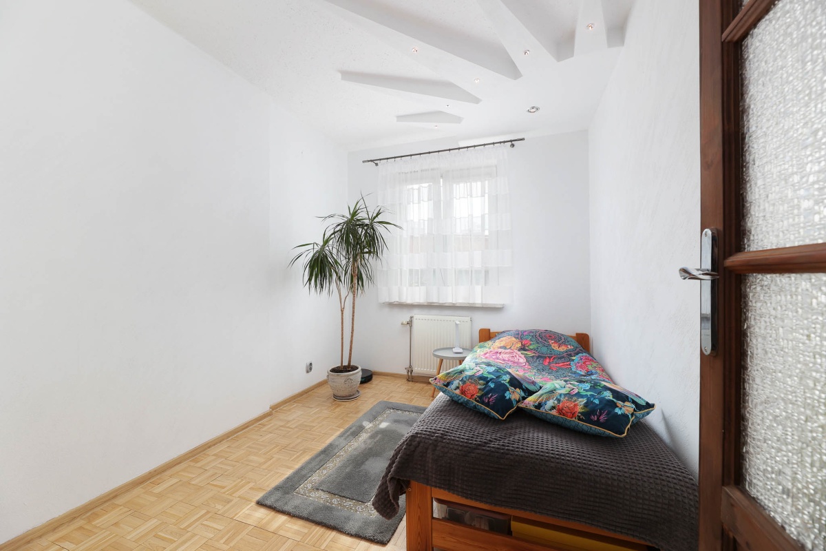Oferowana nieruchomość składa się w swojej zasadniczej części (52,5 m2) z dwóch oddzielnych pokoi, osobnej kuchni, łazienki , spiżarni/pomieszczenia gospodarczego i przedpokoju oraz przynależy do niej balkon i ponadstandardowych rozmiarów piwnica (5,6 m2). Dodatkowo wraz z mieszkaniem sprzedawana jest mieszcząca się bezpośrednio nad nim część strychu o łącznej powierzchni ok. 25 m2, dająca bardzo szeroki wachlarz możliwości zagospodarowania tj. nie tylko potencjalnie stworzenie dwupoziomowego mieszkania o większej powierzchni, ale również zagospodarowanie na strychu osobnego pomieszczenia do pracy lub rozrywki. Lokal przeznaczony jest do sprzedaży z całością ruchomego wyposażenia i nadaje się do natychmiastowego zamieszkania lub wynajmu.