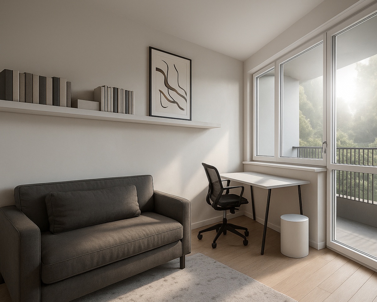 Południowa ekspozycja- balkon oraz większość okien znajdują się od południa czyniąc mieszkanie słonecznym i ciepłym.