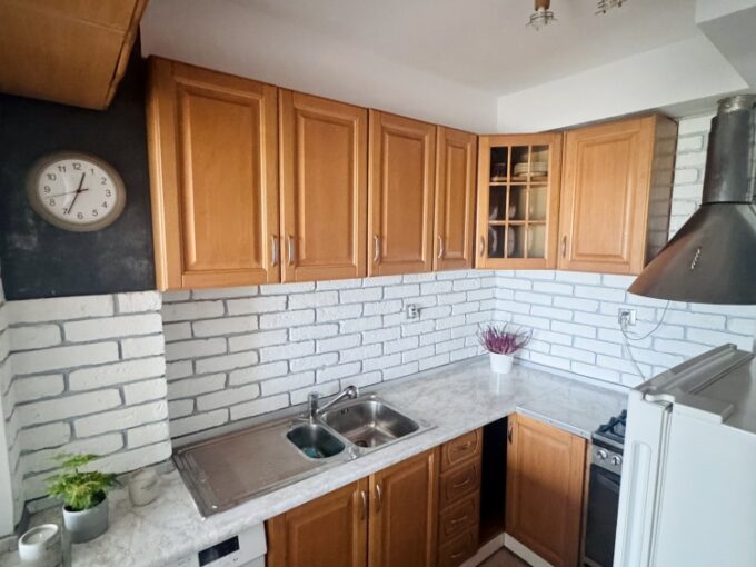 Kuchnia 8 m.kw i łazienka, 2,6 m.kw. nie są wielkie ale doskonale spełniają swoje role. Nie będziecie mieli problemu, żeby z wanny sięgnąć do wieszaka z ręcznikami. A w kuchni, spokojnie zmieści się i On szykujący obiad i Ona, jeśli wpadnie w tym samym momencie zrobić sobie kawę.