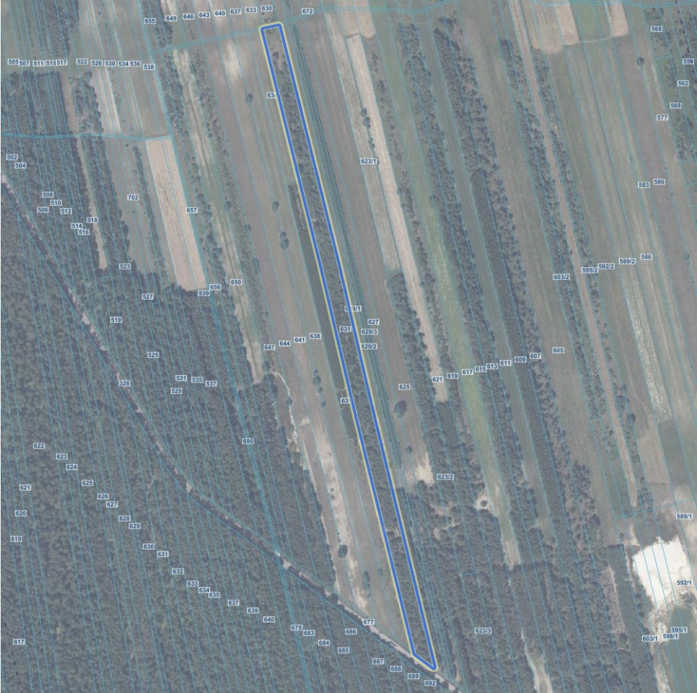 Cała działka ma 3 hektary, szerokość około 20 metrów, teren jest wąski, ale bardzo długi.