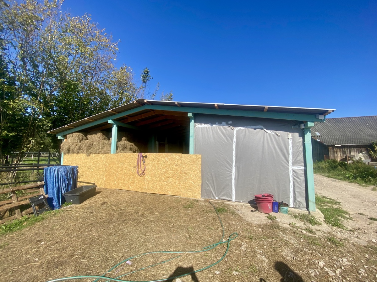 Drewniana stajnia z 6 boksami (w tym jeden z myjką i ciepłą wodą)