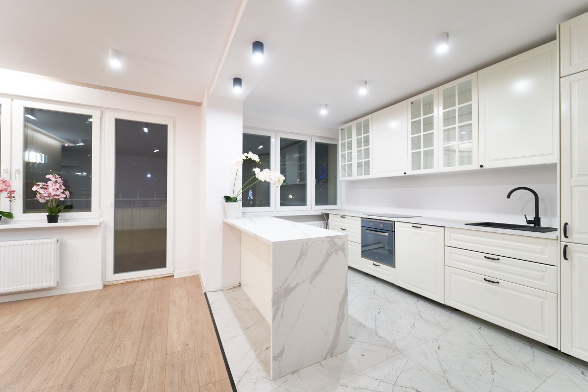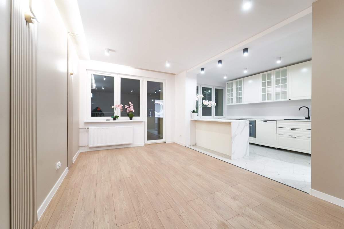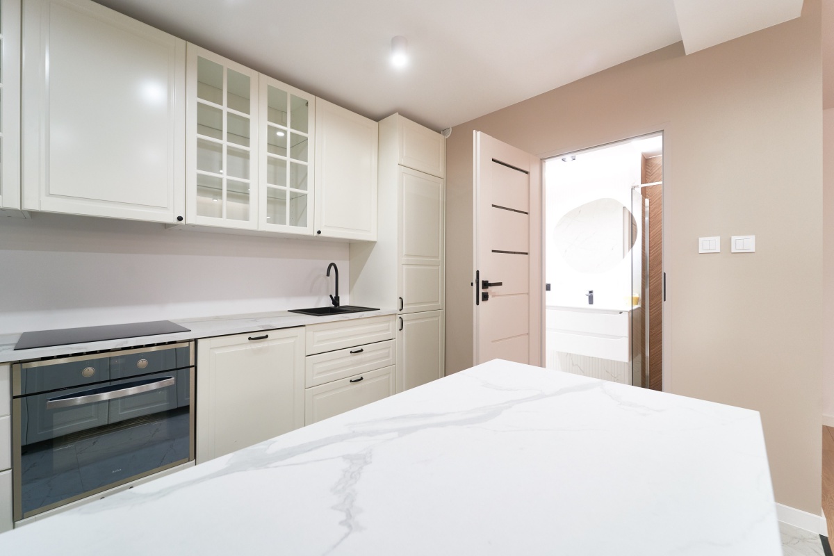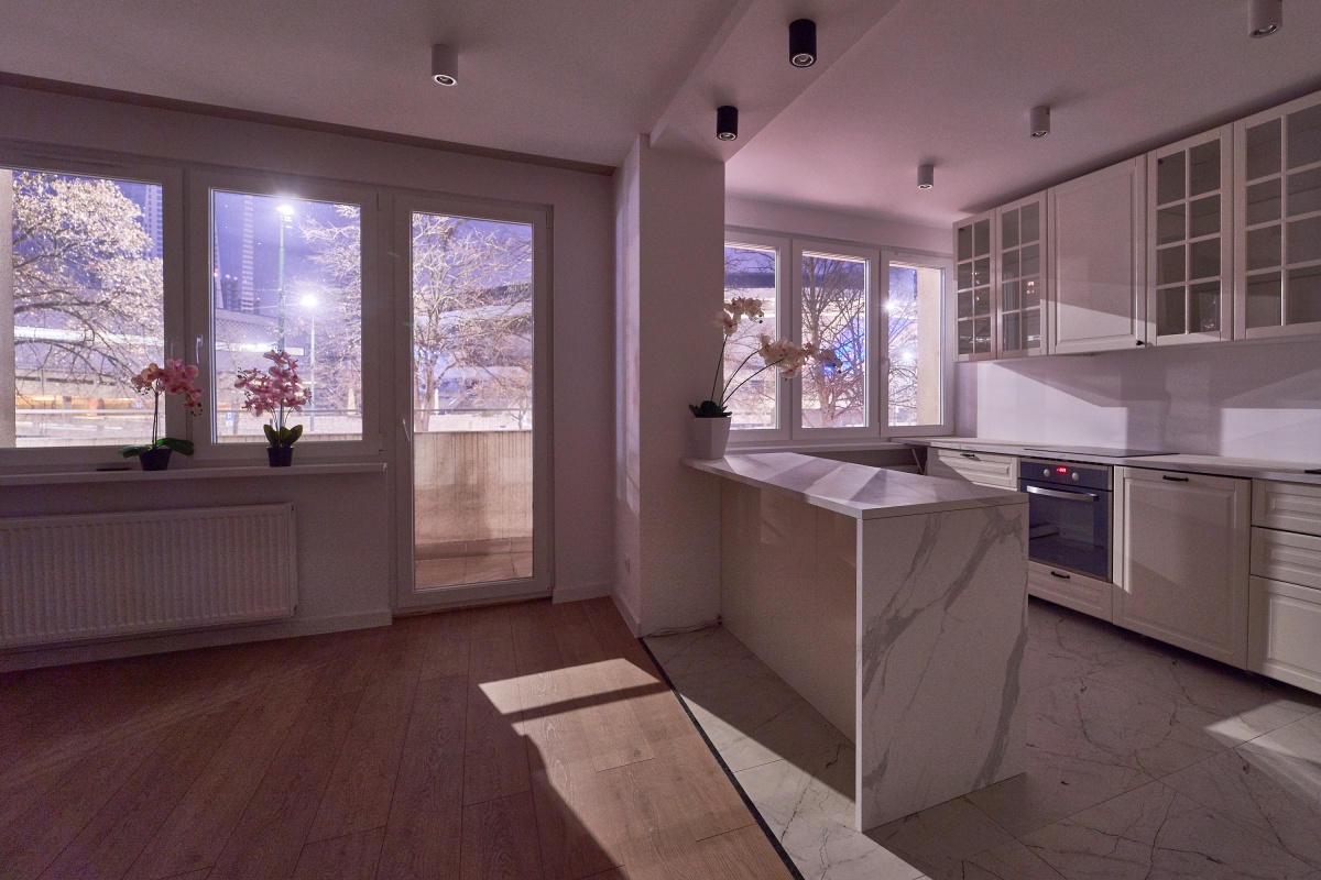– kuchnia w zabudowie z wyspą wyposażona w piekarnik, płytę indukcyjną, lodówkę oraz zmywarkę