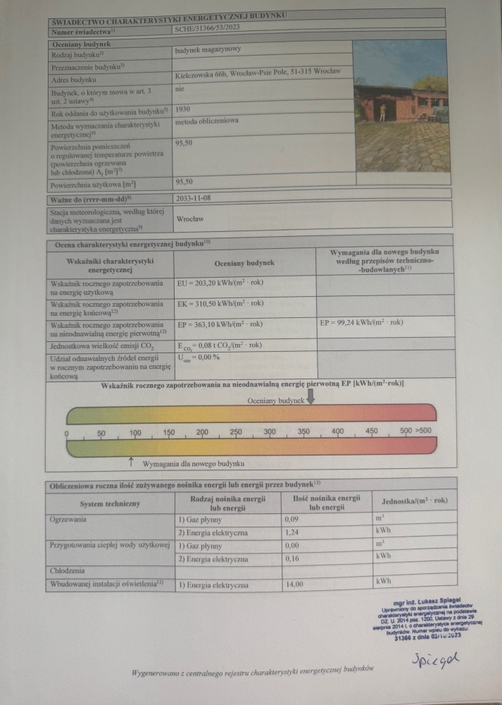 Na działce jest budynek magazynowy o powierzchni 95,5 m2.