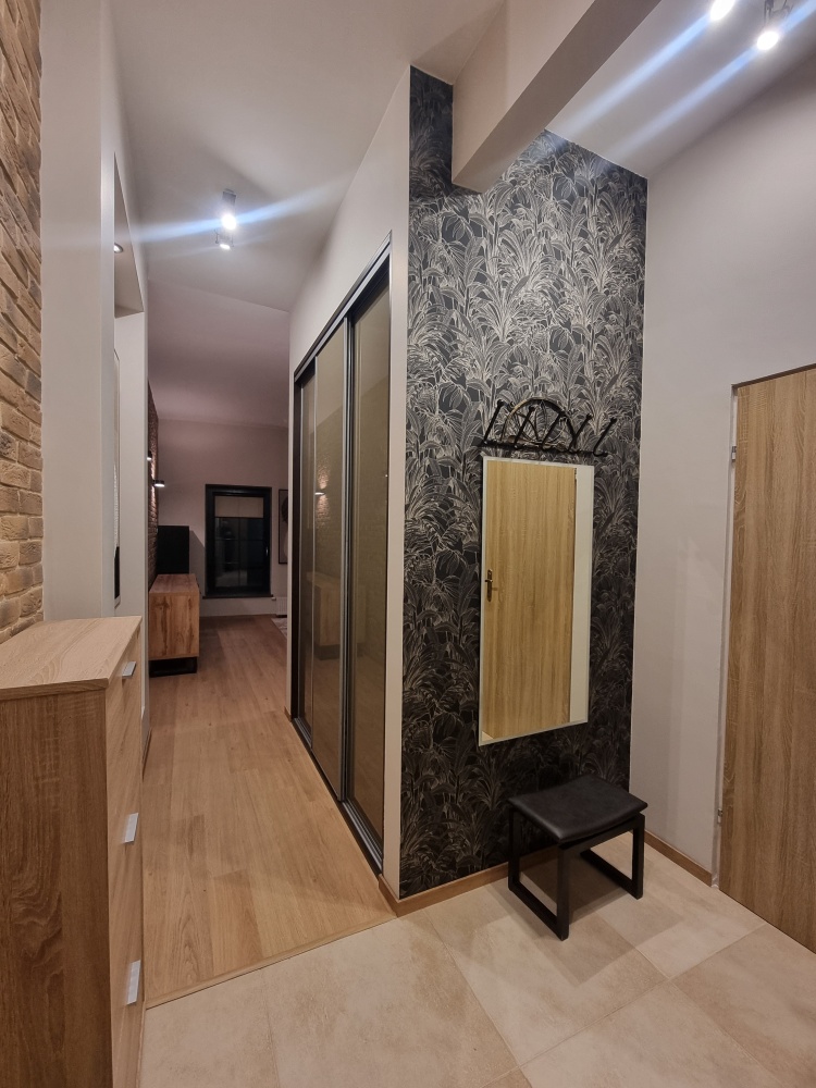 Wyposażona kawalerka 38,60 m2 (wys. 3,15m) w loftach, Zielona Góra, ul. Fabryczna 17d, 1 piętro. Pokój z aneksem kuchennym, przedpokój, łazienka.