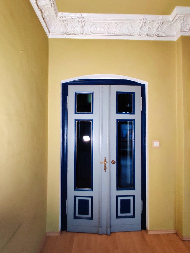 Niezwykły styl starych kamienic ze zdobieniami ściennymi i sufitowymi, stolarka drzwiowa odrestaurowana..