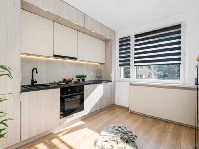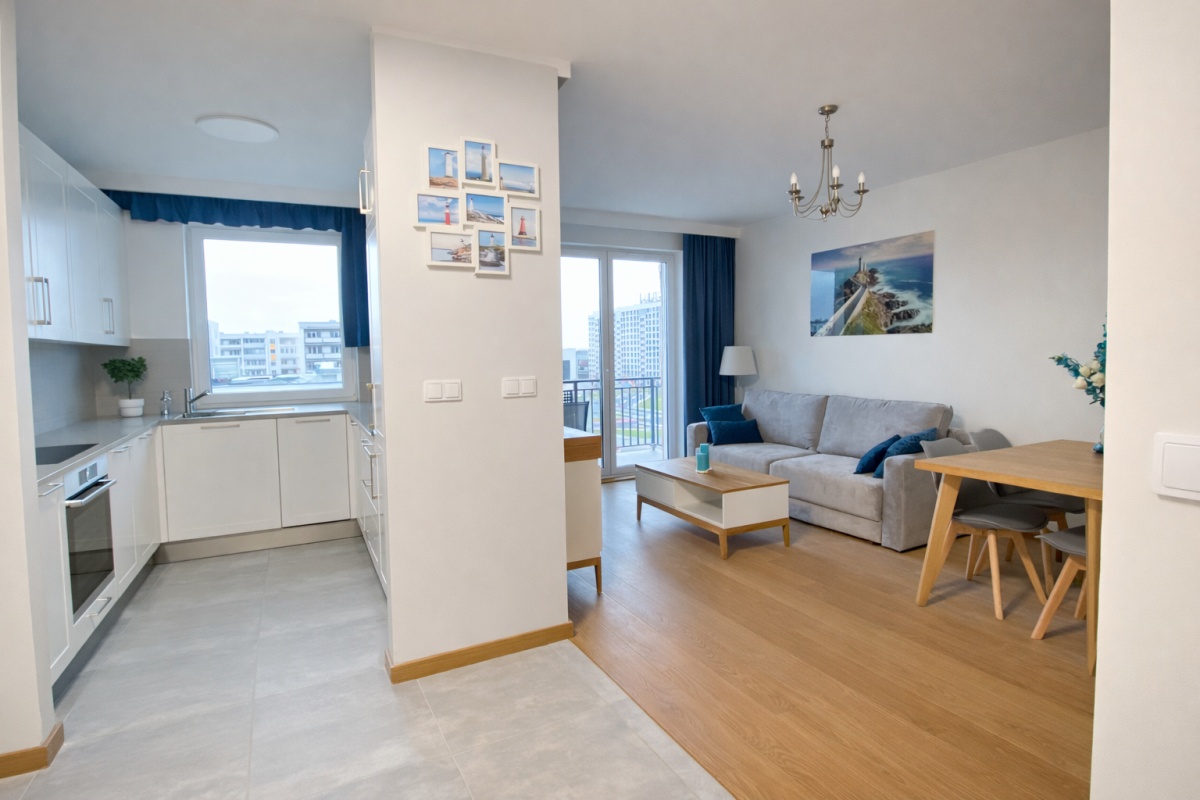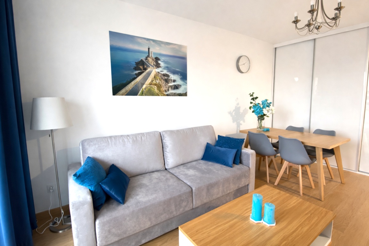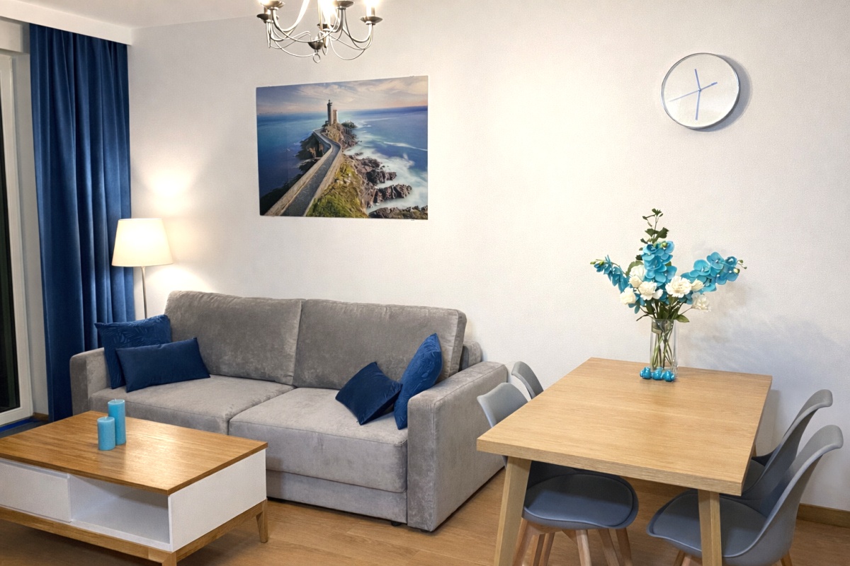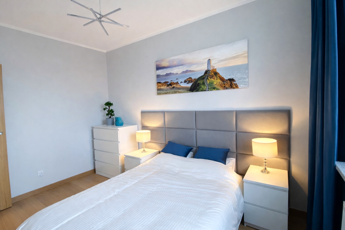 W apartamencie jest pełne wyposażenie: wszędzie nowoczesne oświetlenie LED,
